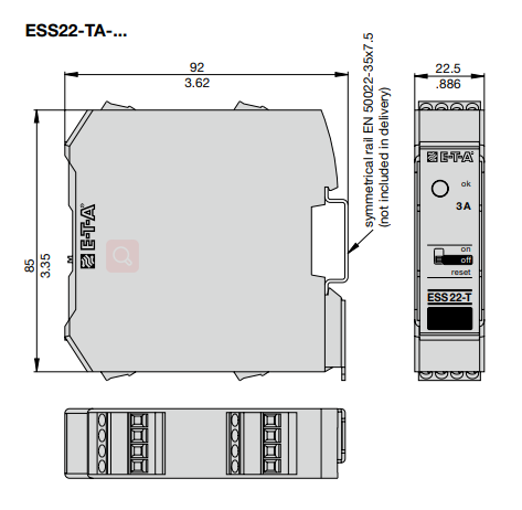 The ESS22-T, with a width of only 22.5 mm, can be snapped onto symmetrical rails ensuring ease of installation and saving space in control cabinets.
